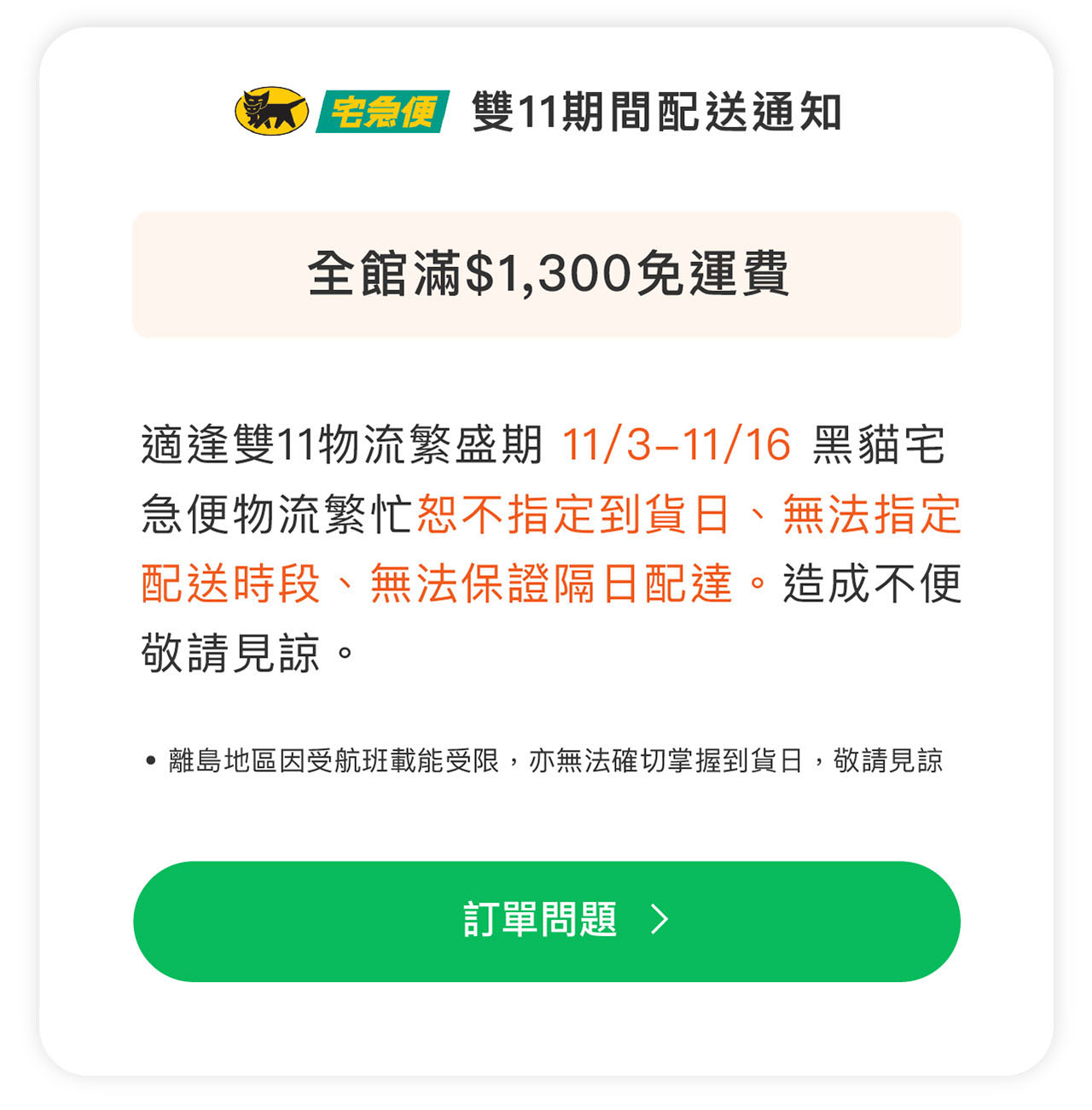●11購物接力嗨●全館1300免運、1500折100!折抵無上限!