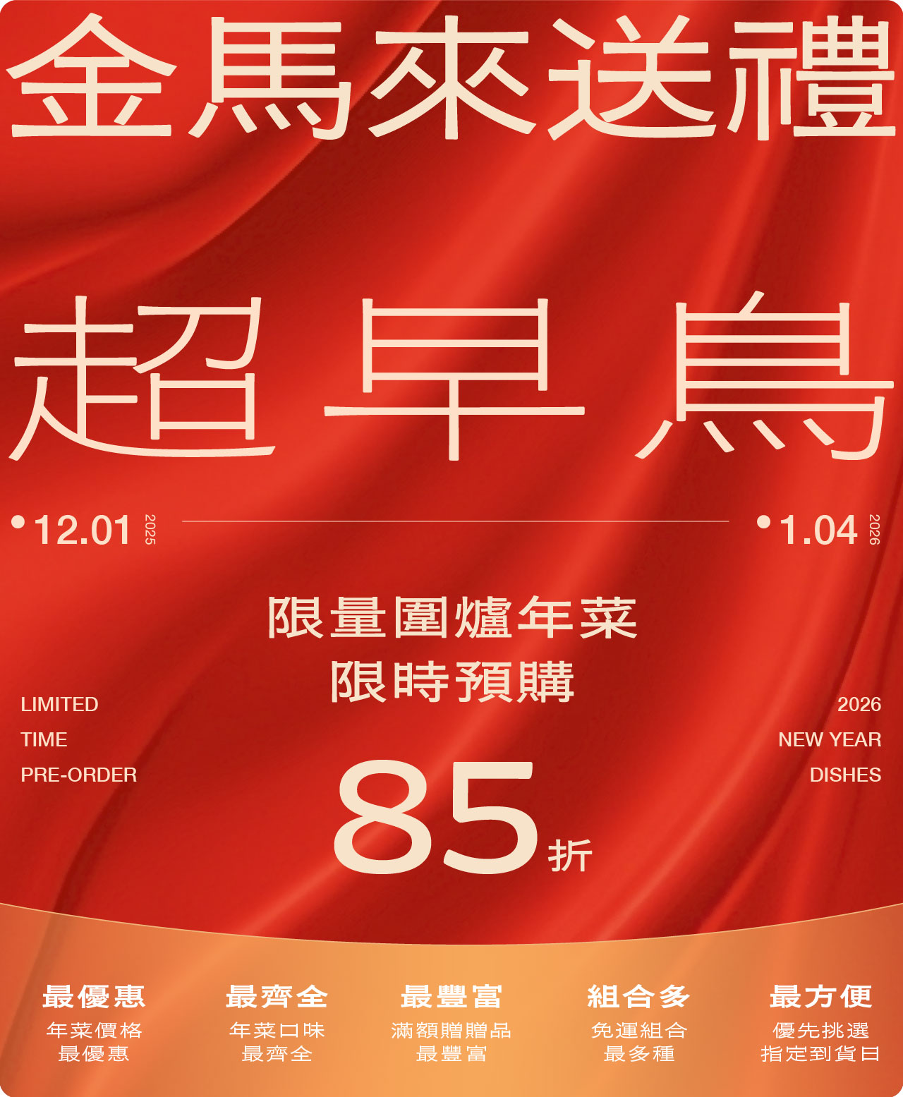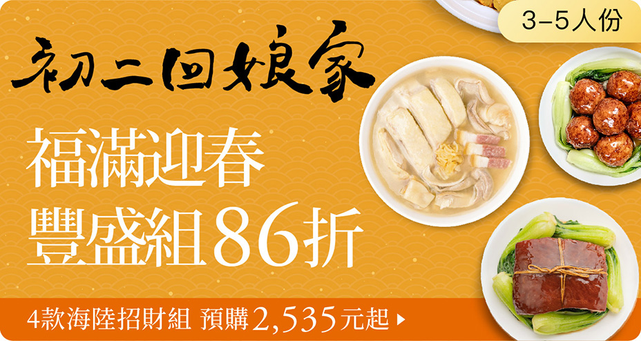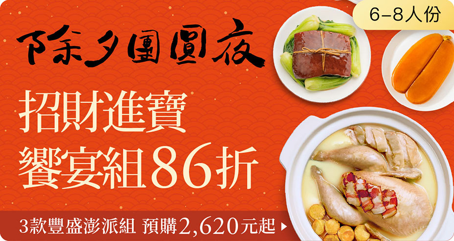 全館1300免運、滿額贈年菜!首波年菜85折預購倒數至01/04
