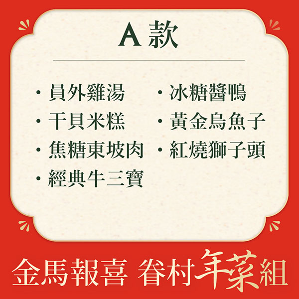 【除夕團圓◍招財進寶-響食組】蘋果日報-年菜評比冠軍⭐預購優惠9折⭐(7款眷村圍爐年菜,3種豐盛組合任選)▲訂購請選到貨日,如指定日期請備註,整筆訂單統一出貨▲
