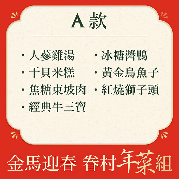 【金馬迎春】人氣熱銷年菜✨預購優惠89折免運❗預購開跑(7款道地眷村圍爐年菜、3款頂級干貝、鮮蝦、鮮肉金元寶)▲訂購請選到貨日,如指定日期請備註,整筆訂單統一出貨▲