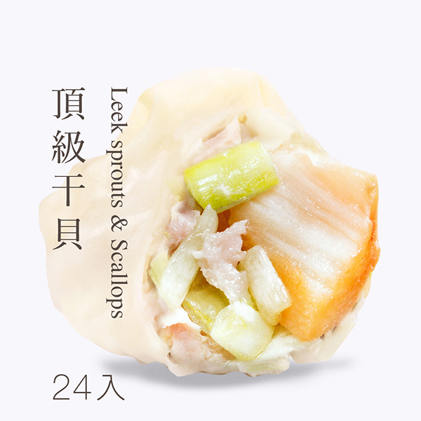 【商品特色】每盒 / 24顆☄特選台灣契作牧場健康豬搭配上清甜韭黃☄嚴選肥美Q彈頂級干貝☄一口體驗干貝與韭黃搭配而成的山海之味【本商品生產後效期為3個月,以消費者收受日起算,至少距有效日期前60日內】