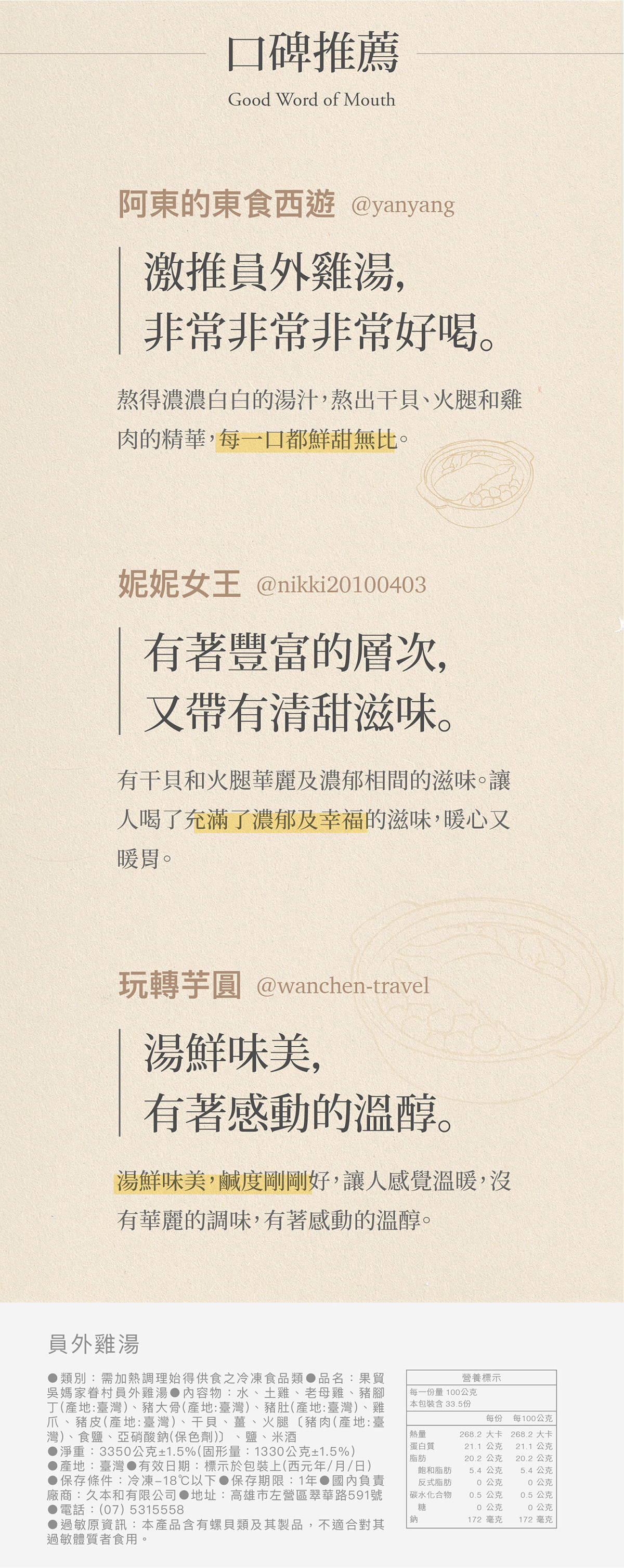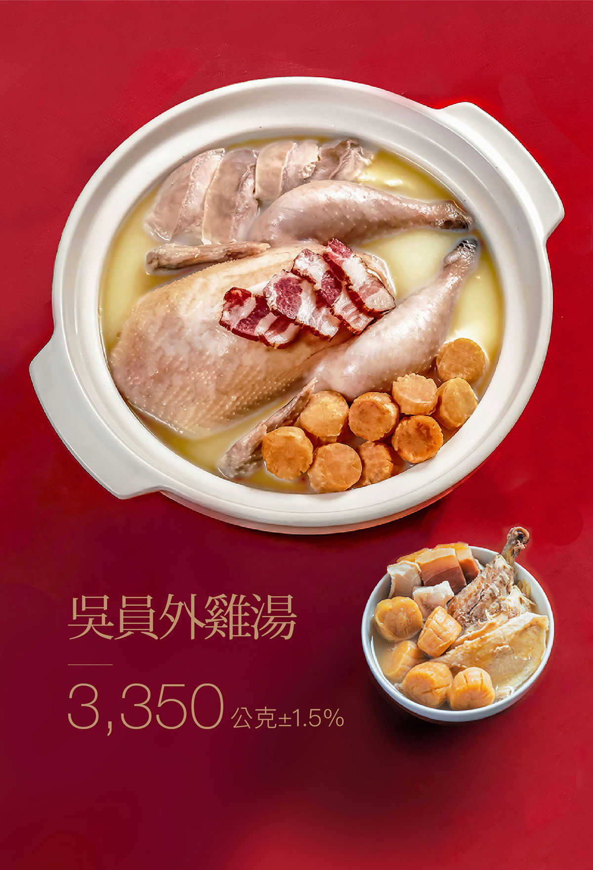 【果貿吳媽家】✨蘋果日報-年菜評比冠軍✨眷村員外雞湯-1份3350g◖吳媽家獨門雞湯◗嚴選6大食材慢火燉煮8小時,熬出濃郁香醇湯頭❗訂購請選到貨日,如指定日期請備註,整筆訂單統一出貨❗