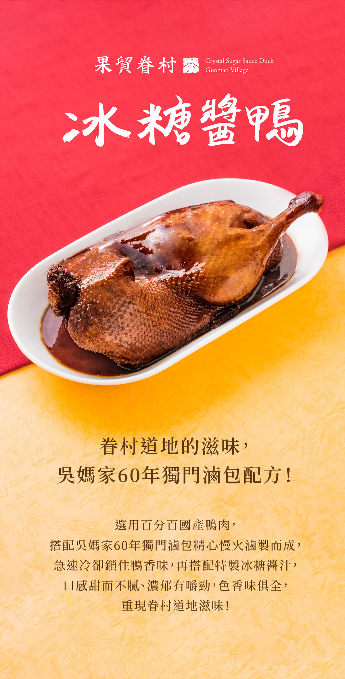 【果貿吳媽家】✨蘋果日報-年菜評比冠軍✨眷村冰糖醬鴨-1份485g◖吳媽家60年獨門滷包◗百分百國產鴨肉,精心慢火滷製,色香味俱全❗訂購請選到貨日,如指定日期請備註,整筆訂單統一出貨❗