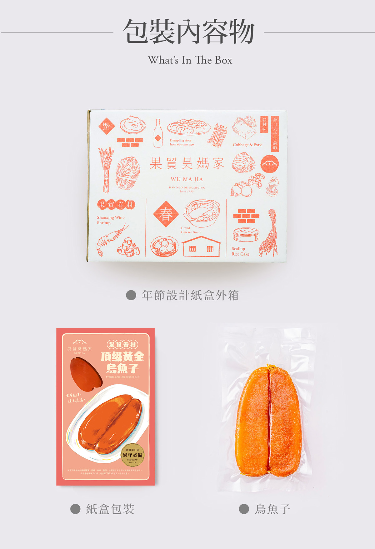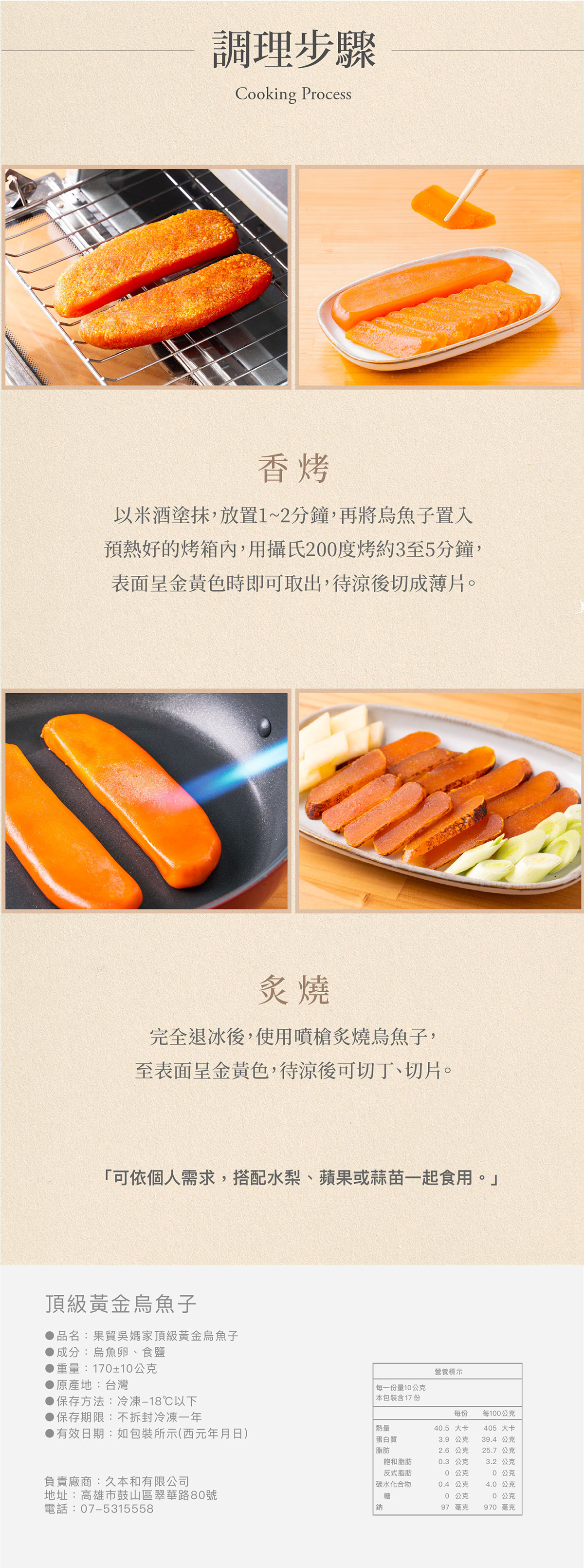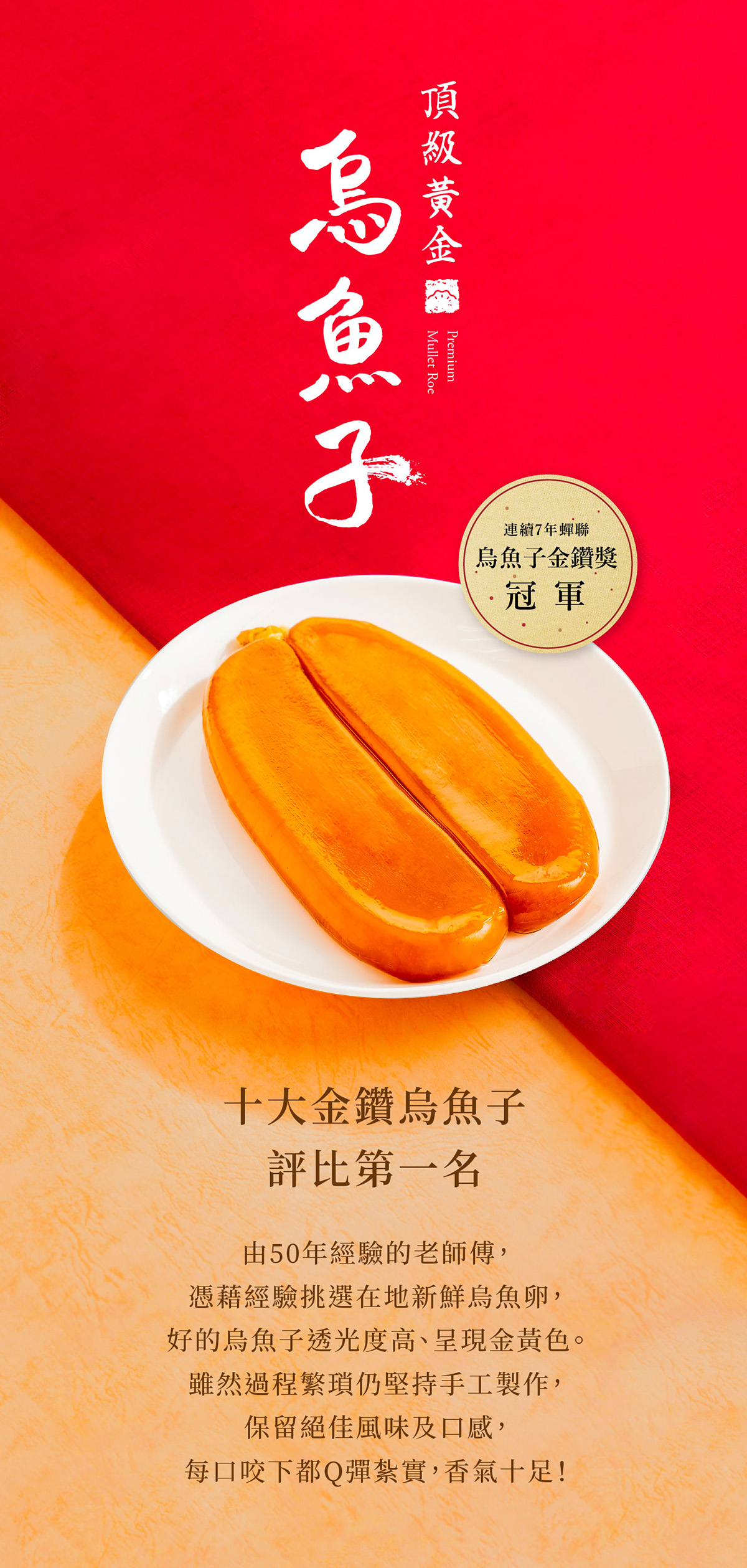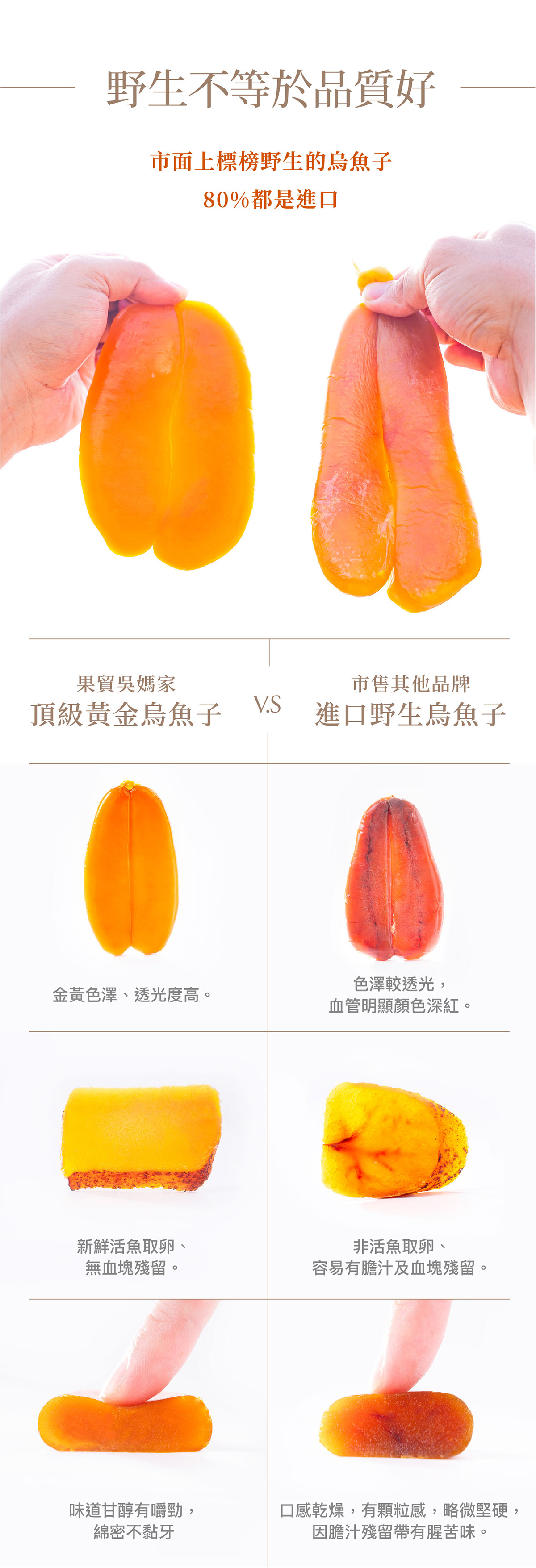 【果貿吳媽家】✨十大金鑽-評比第一名✨頂級黃金烏魚子/1份170g◖傳統手作工法,傳承道地烏金美味◗手工製作,口感Q彈紮實、香氣十足❗訂購請選到貨日,如指定日期請備註,整筆訂單統一出貨❗