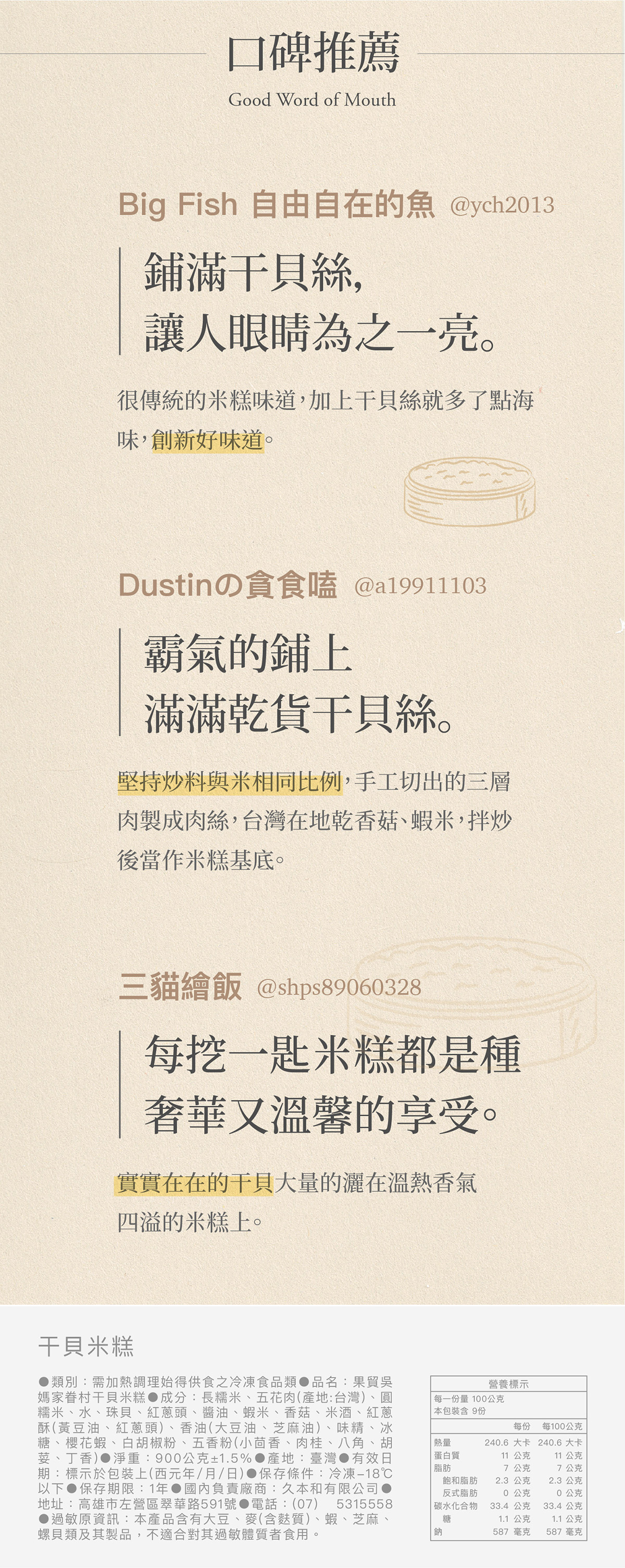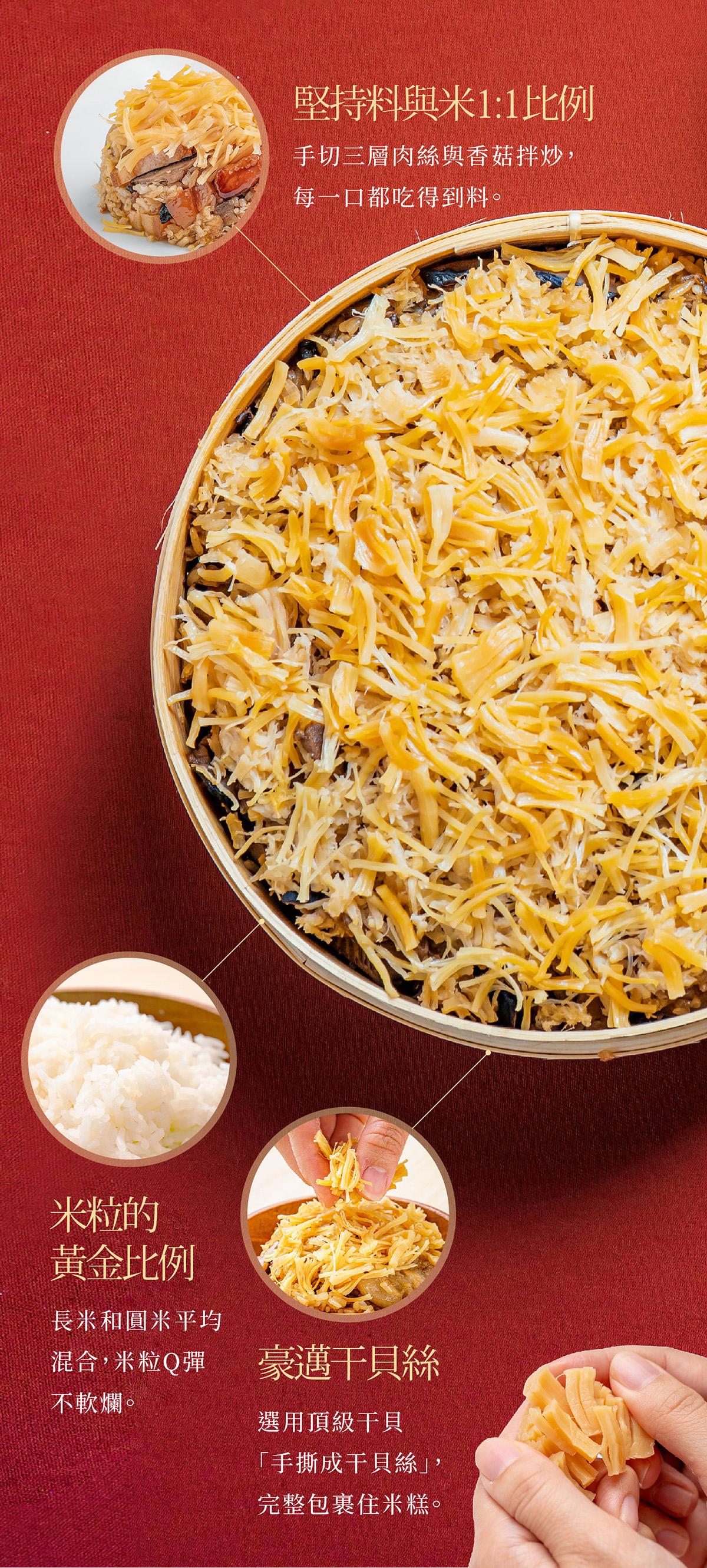 【果貿吳媽家】✨蘋果日報-年菜評比冠軍✨眷村干貝米糕/1份900g◖古法蒸炊,糯米口感Q彈◗滿滿干貝絲拌炒香菇、蝦米~香氣十足❗訂購請選到貨日,如指定日期請備註,整筆訂單統一出貨❗