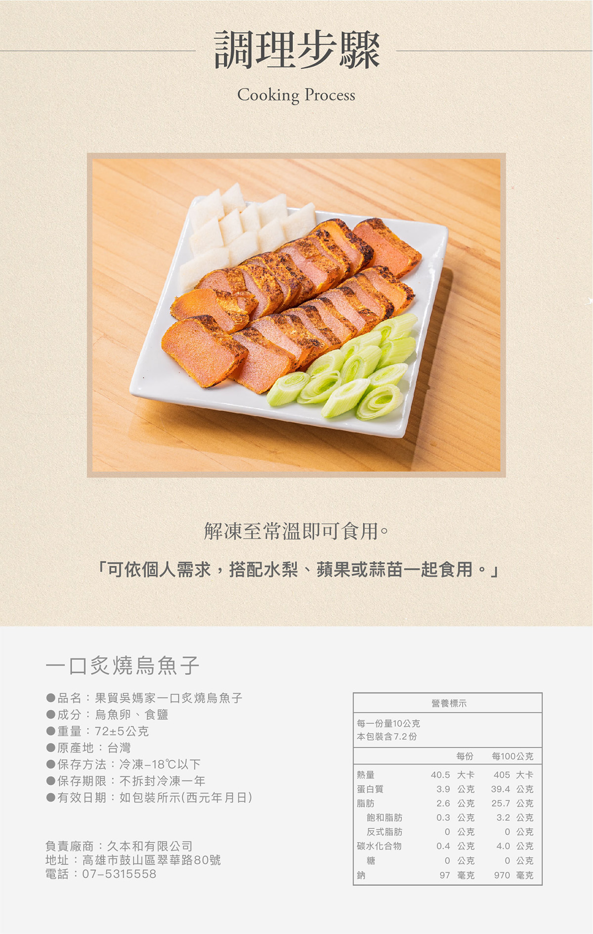 一口炙燒烏魚子/1份72g,約12入: