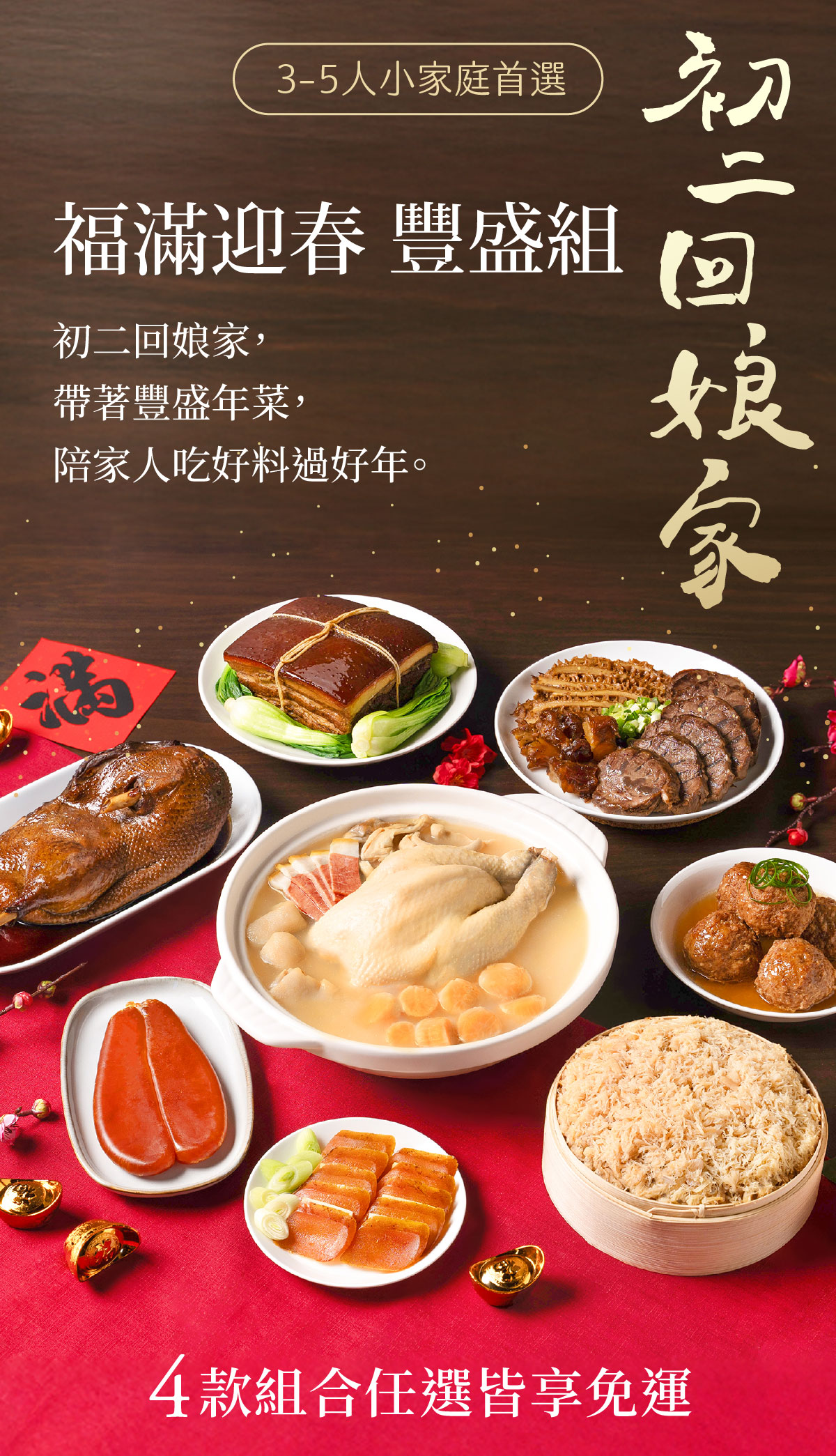 【初二回娘家❤福滿迎春-豐盛組】蘋果日報-年菜評比冠軍✨超早鳥優惠86折✨(7款眷村圍爐年菜,3種好運組合任選)▲訂購請選到貨日,如指定日期請備註,整筆訂單統一出貨▲