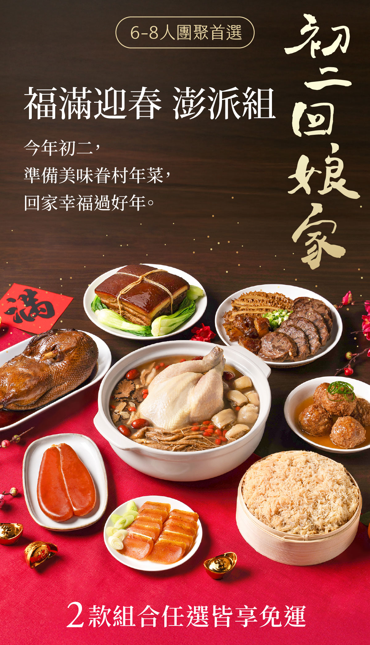 【初二回娘家❤福滿迎春-澎派組】蘋果日報-年菜評比冠軍✨超早鳥優惠86折✨(7款眷村圍爐年菜,2種好運組合任選)▲訂購請選到貨日,如指定日期請備註,整筆訂單統一出貨▲