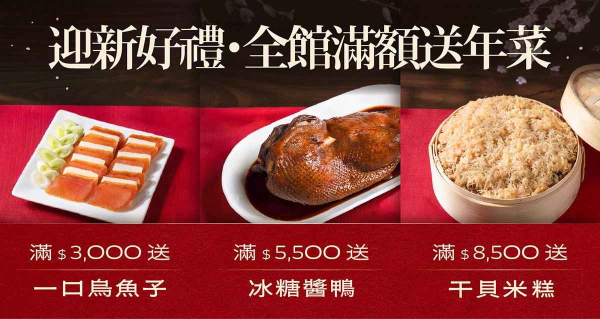 全館1300免運、滿額贈年菜!首波年菜85折預購倒數至01/04