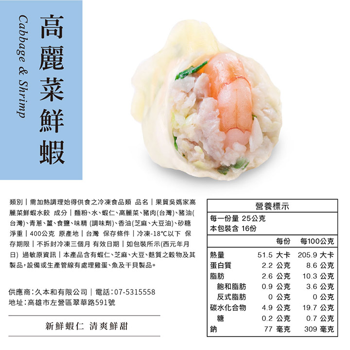 【高麗菜鮮蝦水餃-袋裝16入】🥟手工現包,接單現做✨嚴選初秋品種高麗菜✨一口水餃一口蝦,海味鮮甜,多汁美味!