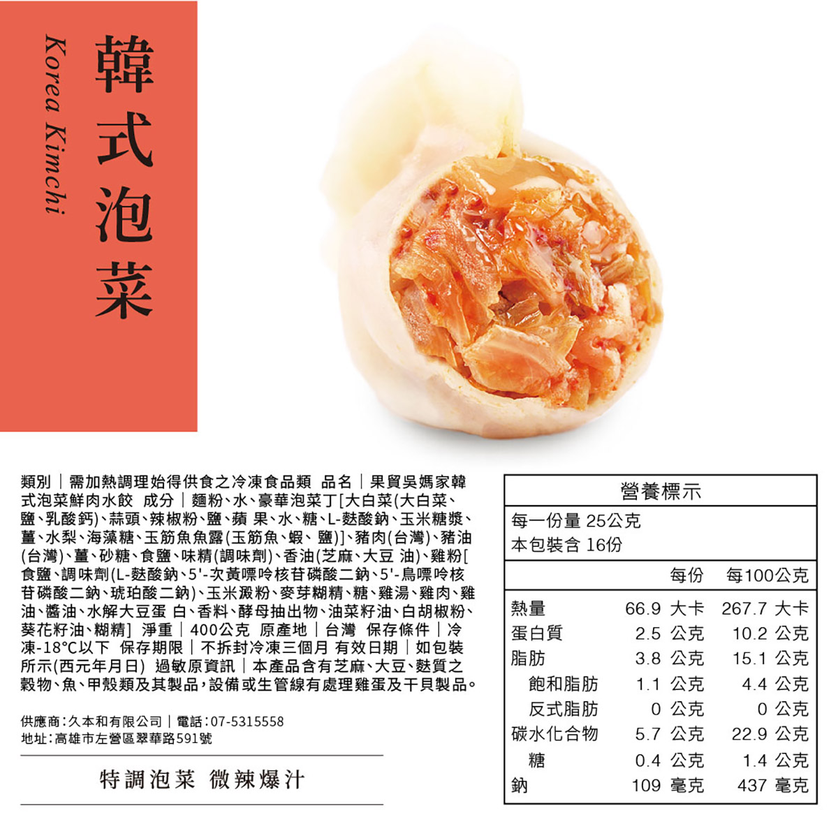 【韓式泡菜鮮肉水餃-袋裝16入】🥟手工現包,接單現做✨果香調配酸甜泡菜✨微辣酸甜內餡滋味,爆汁口感食慾大開!